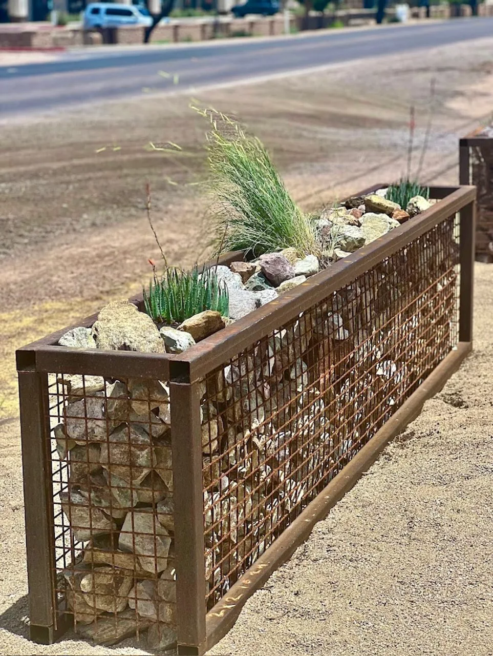 Gabion Baskets are an amazing item that can be used in lots of different ways. They can be used in a garden, or as a retaining wall, fences, slope paving, or as a decorative landscape feature. These baskets are galvanized steel, double twisted, woven wire mesh that you can fill with just about anything. These wire mesh baskets come in many shapes and sizes but most common is the rock filled gabion wall. Stop by our queen creek location to see our pre-made baskets. Let us know if you like us to custom build yours today!